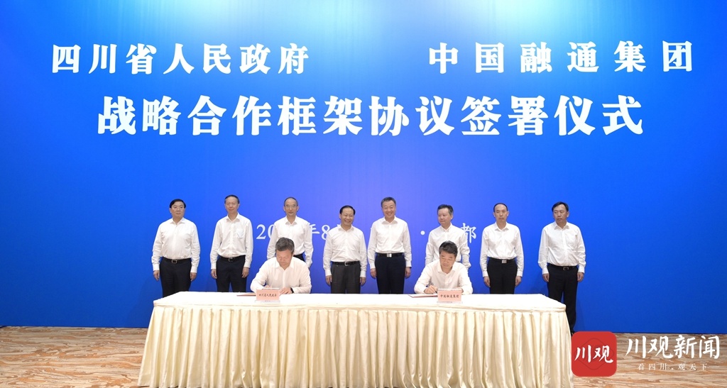 8月26日,四川省人民政府与中国融通集团在成都签署战略合作框架协议。省委书记彭清华,省委副书记、省长黄强会见中国融通集团董事长温刚、总经理马正武一行,并共同见证协议签署。