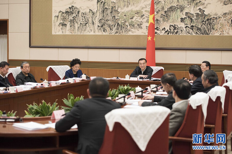 1月25日,国务院总理李克强在北京主持召开座谈会,听取专家学者和企业界人士对《政府工作报告(征求意见稿)》和《“十三五”规划纲要(草案)(征求意见稿)》的意见建议。新华社记者 李学仁 摄