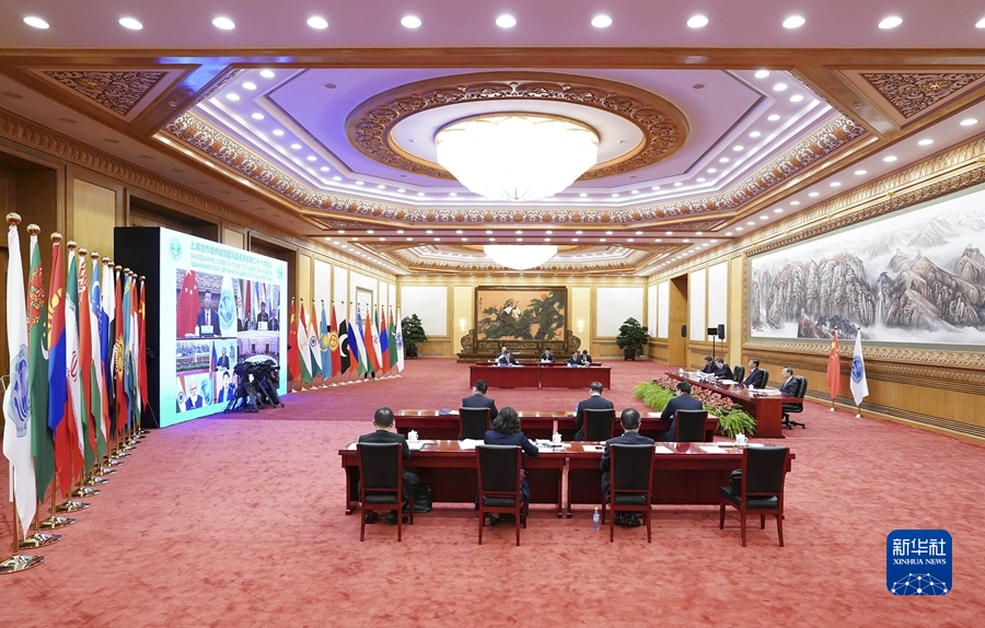 9月17日,国家主席习近平在北京以视频方式出席上海合作组织成员国元首理事会第二十一次会议并发表重要讲话。 新华社记者申宏摄