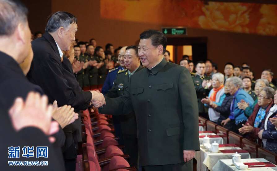 1月28日,中央军委慰问驻京部队老干部迎新春文艺演出在北京举行。中共中央总书记、国家主席、中央军委主席习近平出席,向在场的军队老同志,向全军离退休老干部,致以新春问候和祝福。新华社记者 李刚 摄
