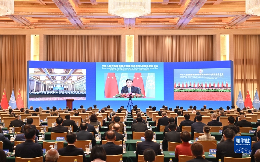 习近平出席中华人民共和国恢复联合国合法席位50周年纪念会议并发表重要讲话