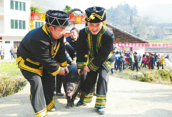 “杀年猪要先祭祭圈门神,再屠工祖师,才进行宰杀祭祀,并且还要进行年猪巡游、年猪接福等。”当地村民李乾远告诉记者,年猪文化在少数边远山区零星流传,在叙永县水潦彝族乡雄光村,每到腊月时节,仍保持着杀年猪迎新年、祭祀神灵、祖传方法制作腊香技艺,邻里乡亲聚在一起吃全锅汤、尝血旺以及体验传统农村娱乐这一传统民俗。