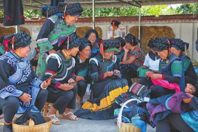 越西县普雄镇彩遗坊彝绣专业合作社的彝族妇女们正全神贯注制作彝绣。四川日报全媒体记者尹钢摄