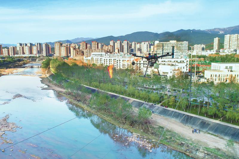 12月9日,国网广元供电公司对110千伏雪九线进行巡检,利用无人机喷火消除线路缠绕的杂物,排除安全隐患。
