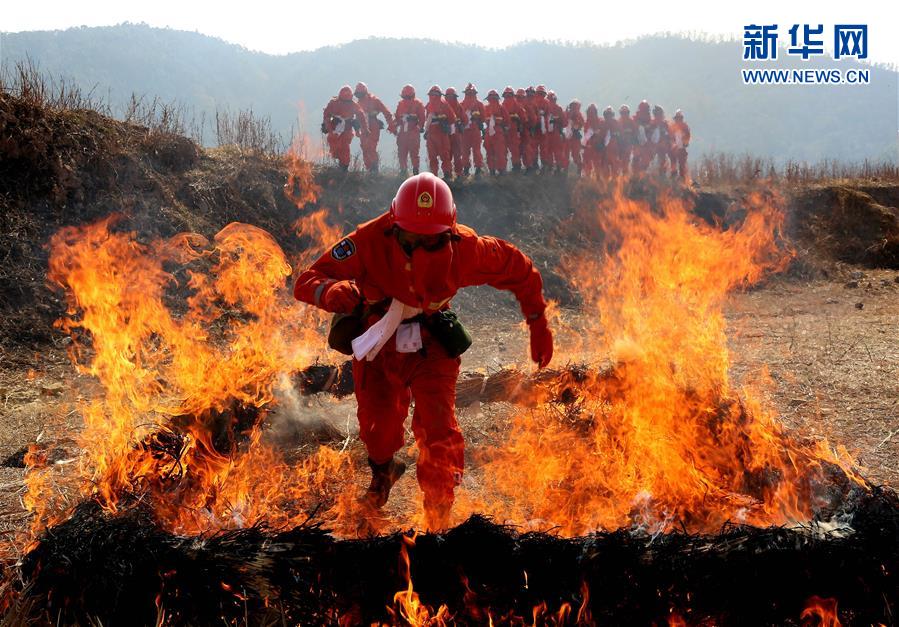 新华社照片,凉山(四川),2016年2月16日四川凉山举行森林灭火演练2月16日,武警凉山森林支队官兵在西昌市西乡林区进行火场心理训练。