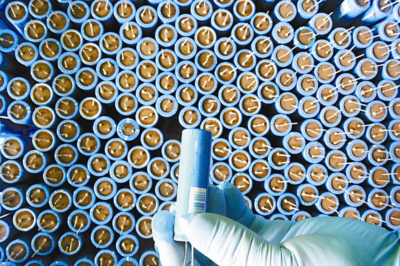 工作人员检查电容器。