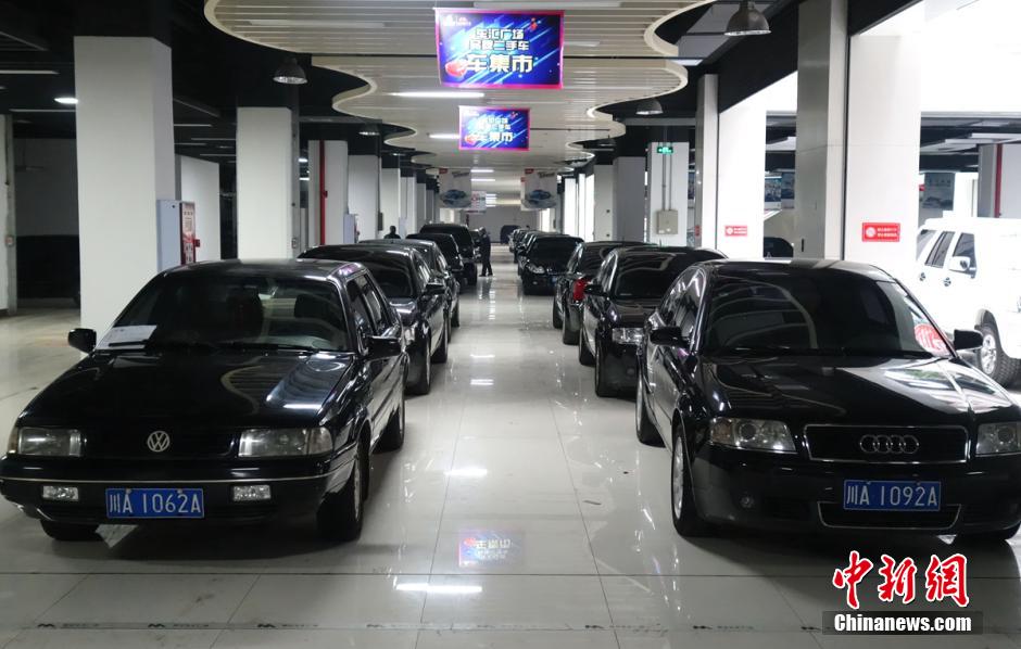 2月17日,四川省省级机关公务用车改革,首批110辆“退役”公车(不含车辆号牌)已全部进入展场,拍卖采取网络拍卖方式。此次四川“退役”的公车有1800余辆,将在1年内分批次向社会进行公开拍卖。图为首批拍卖的110辆“退役”公车已全部抵达展场。刘忠俊 摄