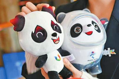 成都大运会吉祥物“蓉宝”和北京冬奥会吉祥物“冰墩墩”在一起。