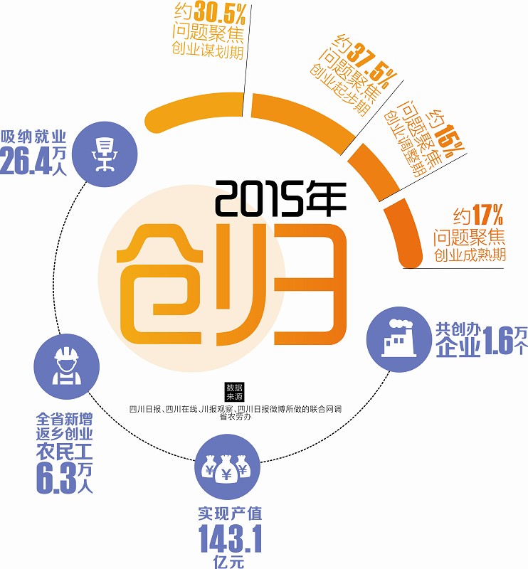 2月19日,本报向有意或已返乡创业的川籍农民工征集待解的创业问题,邀请17位省内成功创业的川籍返乡农民工给予解答。截至2月21日,已有超过4800位网友参与提问。征集到的问题,涵盖从创业谋划期到成熟期的各个阶段,最多的是关于“如何筹集资金”,占总数的25%;其次为“如何选择创业领域”,占总数的18.8%。