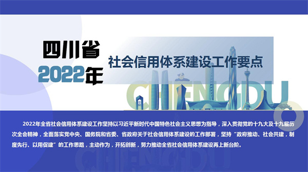 2022年全省社会信用体系建设工作坚持以习近平新时代中国特色社会主义思想为指导,深入贯彻党的十九大及十九届历次全会精神,全面落实党中央、国务院和省委、省政府关于社会信用体系建设的工作部署,坚持“政府推动、社会共建,制度先行、以用促建”的工作思路,主动作为,开拓创新,努力推动全省社会信用体系建设再上新台阶。