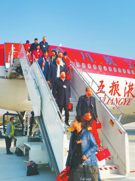 3月3日下午,出席全国政协十三届五次会议的部分住川全国政协委员抵达北京。 黄静 摄