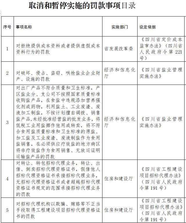汇总所有意见建议后,《四川省人民政府关于取消和暂停行使一批罚款等事项的决定(征求意见稿)》决定取消和暂停行使25项罚款事项,其中取消19项,暂停行使6项。罚款事项取消和暂停行使后,依照法定程序修订相关省政府规章。