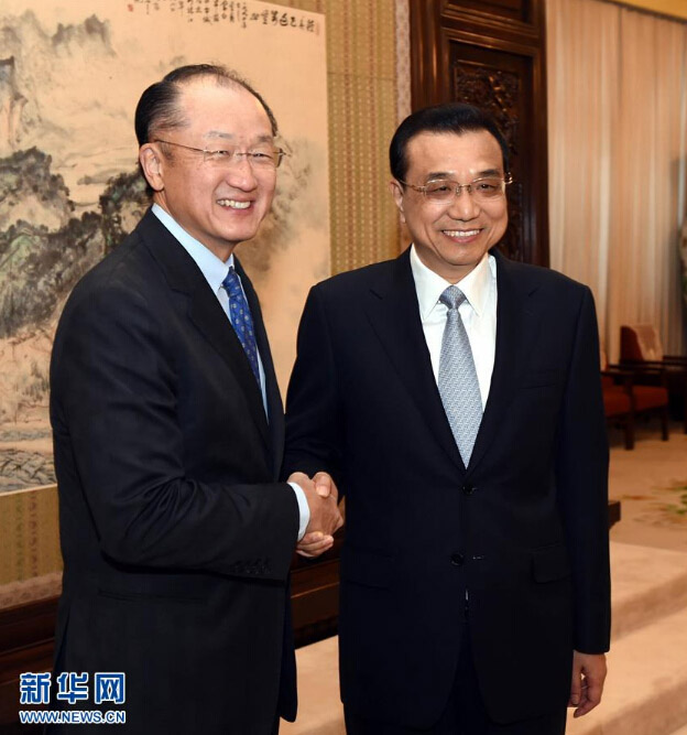 2月24日,国务院总理李克强在北京中南海紫光阁会见世界银行行长金墉。 新华社记者 饶爱民 摄