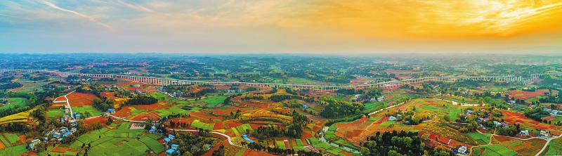 一头连接远山,一头伸向蓝天。登上简阳市三星镇一处高坡,极目远眺,只见离地面数十米的高架渡槽绵延数公里,犹如一道横亘在大地上的人工“天河”。
