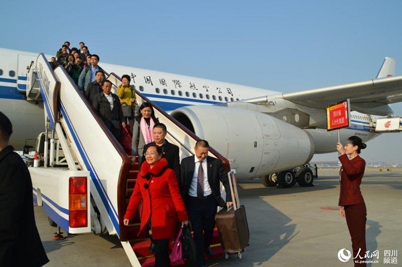 人民网成都3月2日电(记者 陈曦 王波 王洪江)3月2日下午3时40许,全国人大四川代表团抵达北京。