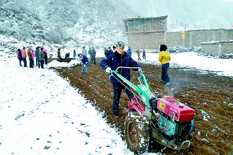3月2日,一场小雪过后,壤塘县石里乡的地头机器声隆隆,当地村民开着小型手扶拖拉机忙着犁地,准备种植高原双低油菜。今年,石里乡计划种植高原双低油菜800余亩,预计可带来54万元收入。