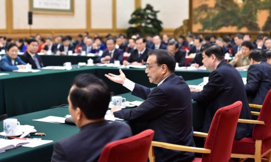 3月6日,中共中央政治局常委、国务院总理李克强参加十二届全国人大四次会议山东代表团的审议。新华社记者 高洁 摄