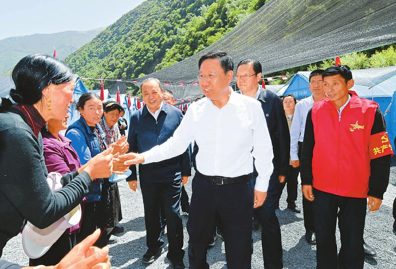 七月六日,省委书记王晓晖来到“6· 10”马尔康地震集中过渡安置点,看望慰问受灾群众,鼓励大家坚定信心,在党委政府帮助下,用勤劳双手重建美好家园。四川日报全媒体记者欧阳杰摄