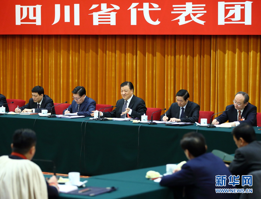 3月7日,中共中央政治局常委、中央书记处书记刘云山参加十二届全国人大四次会议四川代表团的审议。 新华社记者 丁海涛 摄