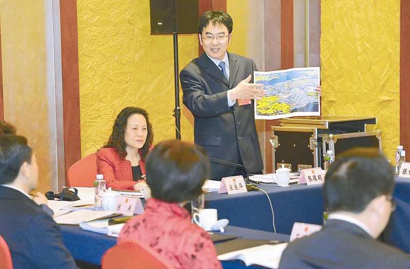 张德明在小组会上向代表们展示青龙场村新面貌。