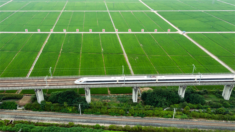 以四川省眉山市东坡区太和镇永丰村高标准水稻种植基地为重要组成部分的东坡区国家现代农业产业园(2022年6月22日摄,无人机照片)。新华社记者 沈伯韩 摄