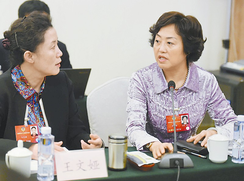 3月7日,朱家媛委员(右)建议充分发挥集中力量办大事的制度优越性,着力构建“东部、沿海经济强县+中西部贫困县”的对口帮扶机制,以实现全面小康建设的全域统筹和协调推进。 川报集团特派记者 田为 摄