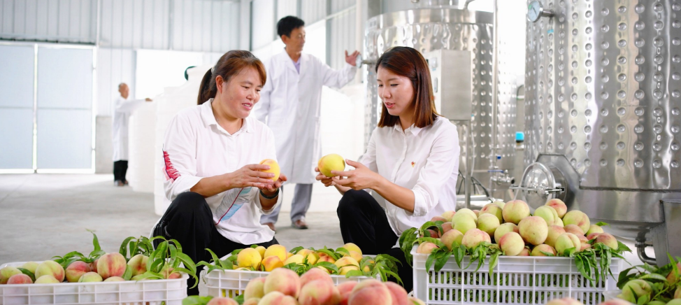 立足资源优势,延伸、整合产业链,提升产业“造血”功能必不可少。刘毅介绍:“在脆桃成熟的季节,我们建起了脆桃加工厂。今年,预计收购老百姓脆桃30余吨,按照10斤桃子一斤酒,预计可产出白酒3吨多,每天可以带动10余名群众就业。”