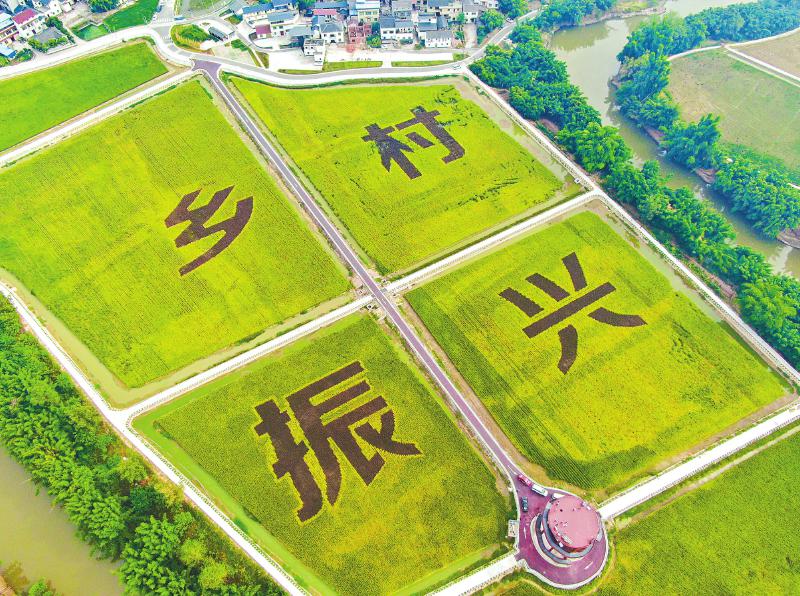 走进内荣农高区现代农业产业示范园西南片(胡家镇中部),站在15米高的农作物病虫害监测预警观测台向下俯瞰,成片的高标准稻田纵横交错,稻穗低垂,田间稻穗拼成的“乡村振兴”四个字十分醒目,目之所及,路成网、渠成系、田成格。
