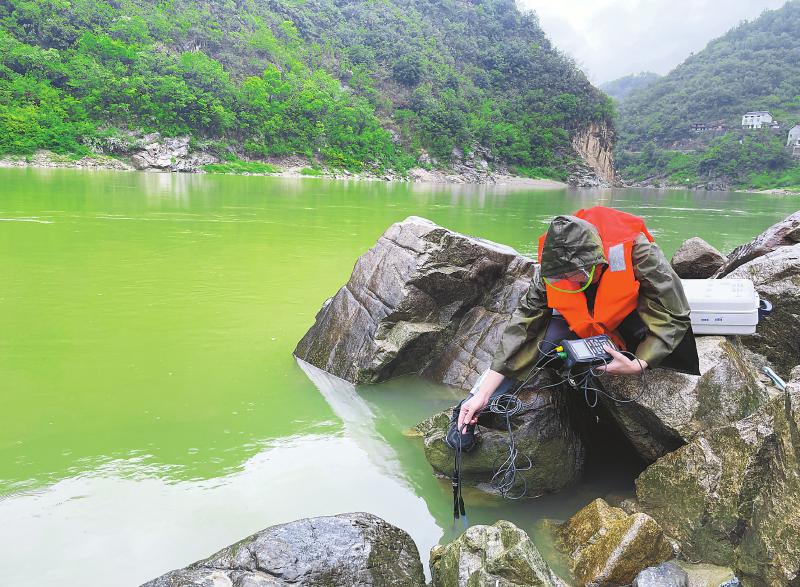 工作人员在嘉陵江取水采样,进行水质检测。 四川日报全媒体记者 燕巧 摄