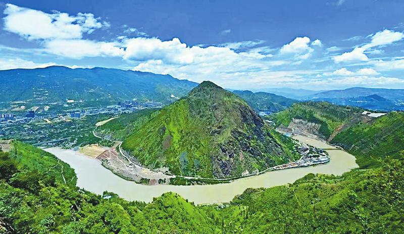 站在攀枝花市炳草岗大桥上远眺,金沙江在山谷间流淌,一湾江水碧绿,两岸林木葱郁。远处,金沙江最大支流雅砻江汇入,两江交汇一路向东奔涌而去。