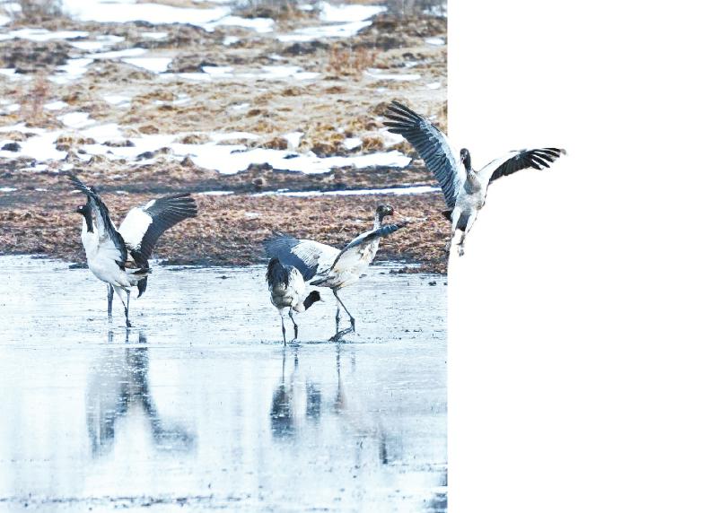 生活在高原的黑颈鹤群。 四川日报全媒体记者 何海洋 摄