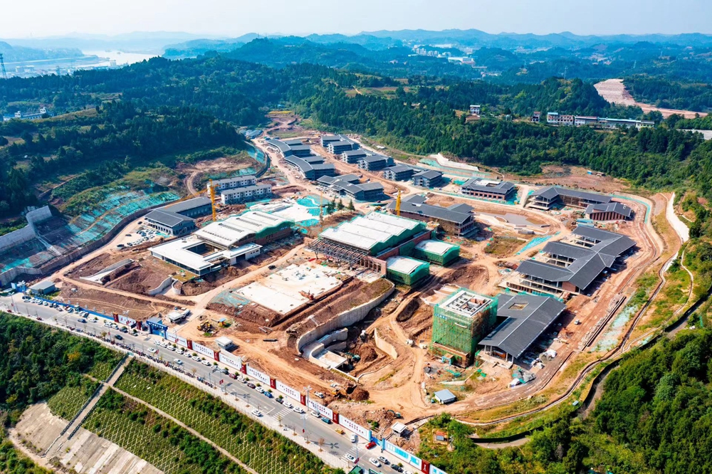 四川新闻网-首屏新闻南充10月28日讯(记者 何佳欣 摄影报道)塔吊高耸、机器轰鸣,一派繁忙景象……近日,位于四川南充仪陇县的张思德干部学院新校区已具雏形。