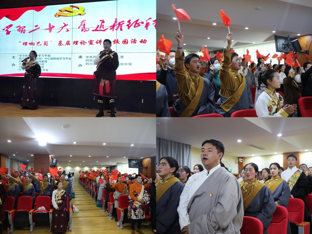 为深入学习宣传贯彻党的二十大精神和四川省委十二届二次全会精神,落实常态化开展党史学习教育部署要求,进一步扩大“理响巴蜀”线下基层理论宣讲活动的覆盖面和影响力,3月21日,“学习二十大 奋进新征程”——“理响巴蜀”基层理论宣讲进校园活动走进阿坝州民族高级中学。