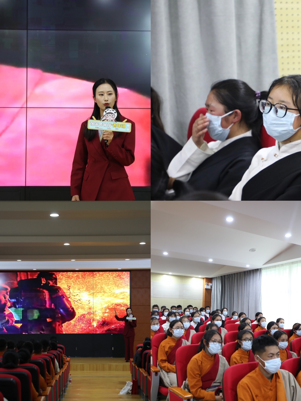 “2022年10月21日9时42分,与队友在湖南组织和掩护地方扑火队员撤离中,因火场突发爆燃,蔡茂强同志不幸壮烈牺牲。离家时的英俊少年归来已成烈火英雄。蔡茂强骨灰回汶川的那天是10月25日,正是羌族人民的传统节日——羌历年,县城所有商铺关门,全城3万多人迎接他回家。有人举着‘英魂归故里,热血遗我乡’的标语泪流满面……”宣讲员杨丹情绪饱满,台下认真聆听的师生也有不少红了眼眶。3月21日,“学习二十大 奋进新征程”——“理响巴蜀”基层理论宣讲进校园活动走进阿坝州民族高级中学,这动人的一幕正是出现在此次活动的宣讲环节中。