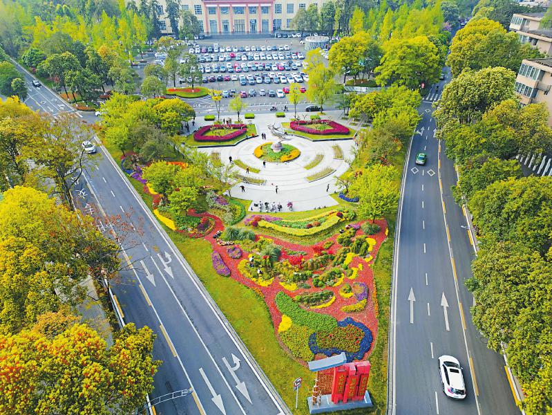 成都市人民中路一段,后子门游园的花境营造。受访者供图