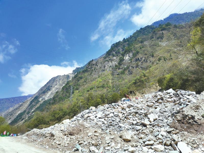 在雅安市宝兴县黄店子容大矿生态修复工程现场,数台挖掘机铁臂高举,正有序地将废渣转运到附近的矿坑进行填埋。四川省地质局所属第一地质大队教授级高级工程师张继与现场的工作人员共同商讨着如何处置废弃矿山的大理石矿渣及泥石流灾害体,以及如何进一步优化施工工序,确保工程主体在汛期来临前完工。