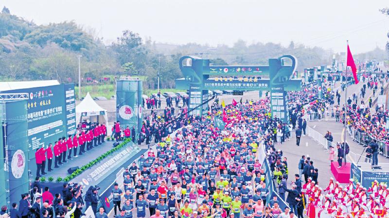 近日,“惊奇自贡·好玩大安”2023自贡恐龙半程马拉松在自贡市大安区青龙湖广场开赛,6000余名跑友环绕青龙湖核心景区奔跑,领略沿途秀美风光,马拉松的网络直播线上观看人数突破1200万人次,创大安区直播观看人数新高。