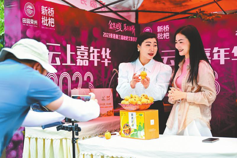 当天,荣县第三届枇杷文旅季在新桥镇开幕,2023县域数字经济发展高峰论坛也在荣县举行,四川电商领域的专家学者、企业家和“蜀中桃子姐”“杨队长”“亿抖虾虾”等近百名网络达人齐聚,为荣县加快建设全省电商产业集聚地献计献策。