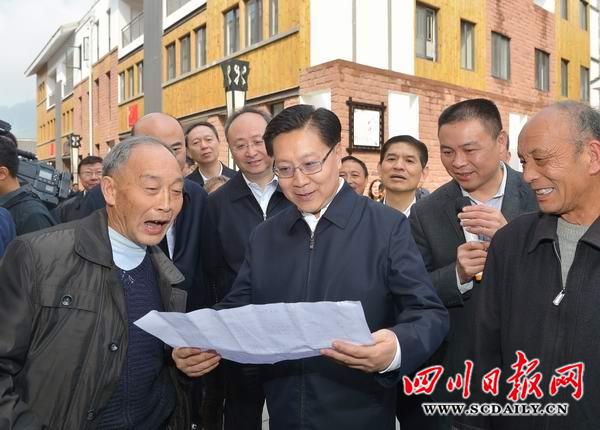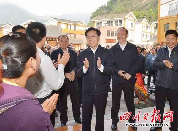 4月20日,省委书记、省重建委主任王东明在芦山县调研时对乡亲们说:“希望大家在党委政府的帮助支持下,继续自力更生、艰苦奋斗,把日子越过越红火,真正住上好房子、过上好日子、养成好习惯、形成好风气。”四川日报记者毛漫丁摄