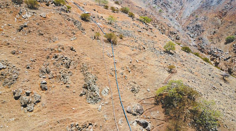 引水管道翻越1200米长的陡坡段。 韩嘉伟 摄