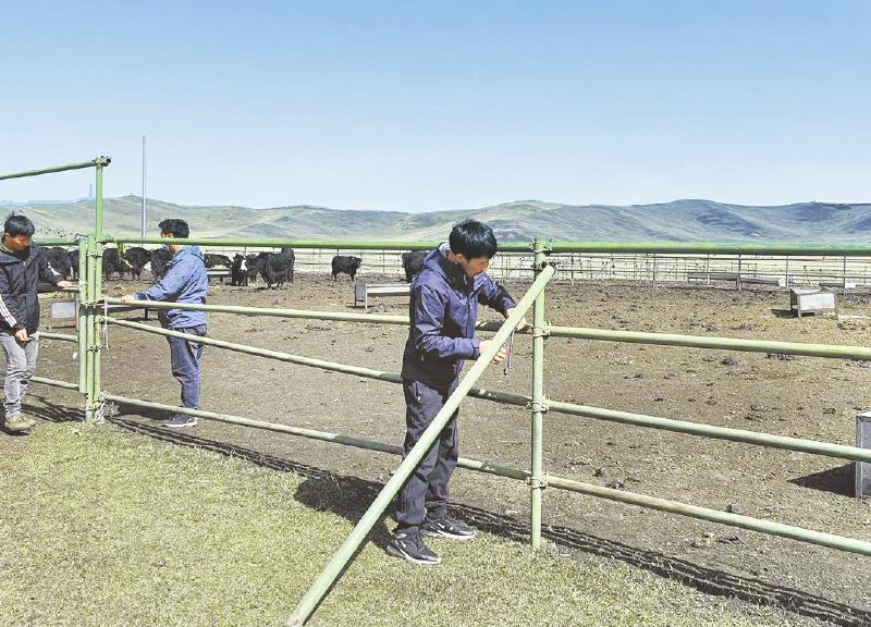 探索草畜平衡之路,当地首先从养殖技术抓起,探索“适度放牧、科学补饲、适时圈养”模式,给草原“减负”,改变周边生态环境。近年来,通过发展生态环保、拆装方便的牦牛多功能巷道圈,实现“牲畜到哪里圈舍就到哪里”。这种多功能巷道圈以钢管为材料,每个卡扣上下连接,使用螺丝固定组装,可根据不同牛群数量任意拆装组合。