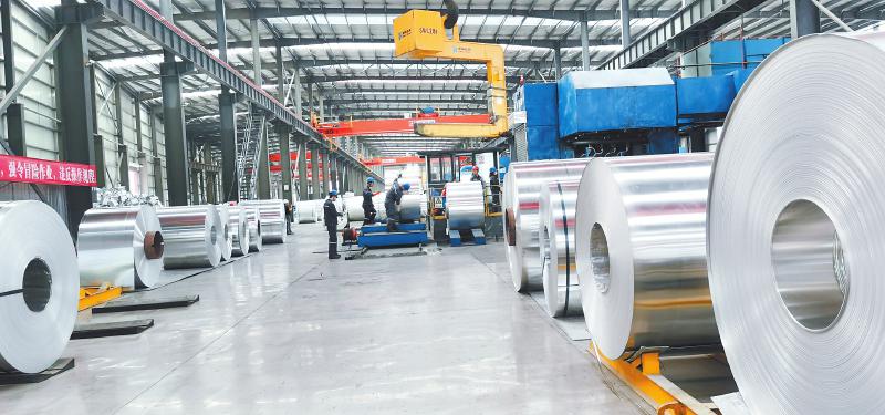 6月26日,久达新材料公司内,各生产车间内机器高速运转,工人们在铝杆、冷轧、热轧、铸轧生产线上不停忙碌。