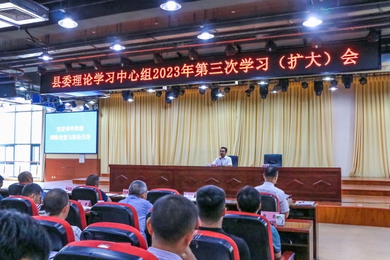 7月7日,县委理论学习中心组召开2023年第三次学习(扩大)会。会议特邀雅安市委宣传部副部长袁久胜到会并作题为“突发事件舆情网络处置与舆论引导”的专题辅导,会议由县委副书记张孝峰主持。