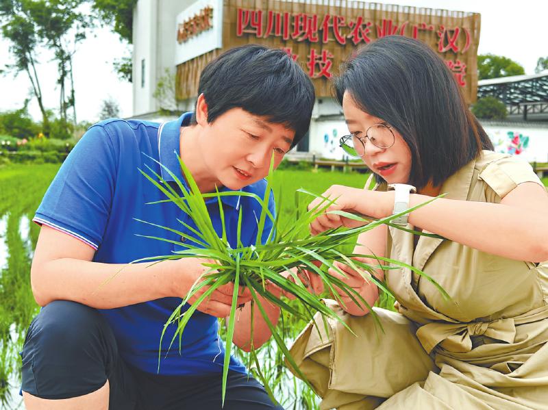 此外,广汉市还坚持人才引领,引入11个专家团队,组建了小麦、水稻两个专家大院。其中,小麦专家大院已建成近20年,真正做到了“创新转化一条线、专家农民面对面”,通过特聘农技员、选派科技特派员、选聘“土专家”等方式,确保每个村都有3名以上农技员,实现县乡村三级农技员全覆盖,他们深入田间地头,做给农民看、带着农民干,真正打通了农技推广“最后一公里”。