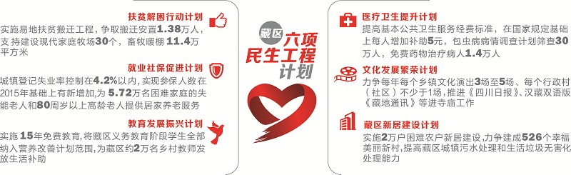 本报讯(记者钟振宇吴浩)近日,省政府办公厅印发《2016年藏区六项民生工程计划总体工作方案》及扶贫解困行动、就业社保促进、教育发展振兴、医疗卫生提升、文化发展繁荣、藏区新居建设等六个实施方案(以下简称《“1+6”方案》),预计各项民生工程投入资金共60.9亿元(含银行贷款和群众投工投劳),较去年增加约8亿元。