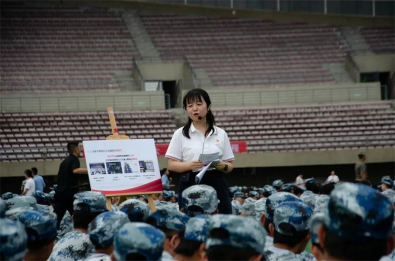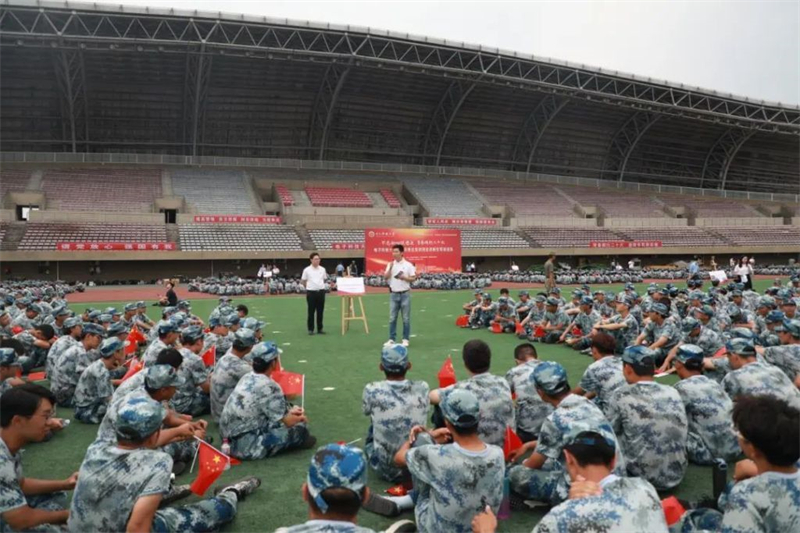 为推进学习贯彻习近平新时代中国特色社会主义思想主题教育走深走实,进一步扩大“理响巴蜀”基层理论宣讲活动的覆盖面和影响力,同时为加强新生理想信念教育和思想引领,9月7日下午,“学习强国”四川学习平台“理响巴蜀”基层理论宣讲进校园活动暨电子科技大学第六期辅导员理论宣讲团走进新生军训连队活动,在清水河校区体育场、沙河校区运动场、海南校区训练场同时举行。52名来自各学院的党委副书记和辅导员骨干来到军训训练场地,围绕习近平新时代中国特色社会主义思想和党的二十大精神,面向2023级新生开展理论宣讲。