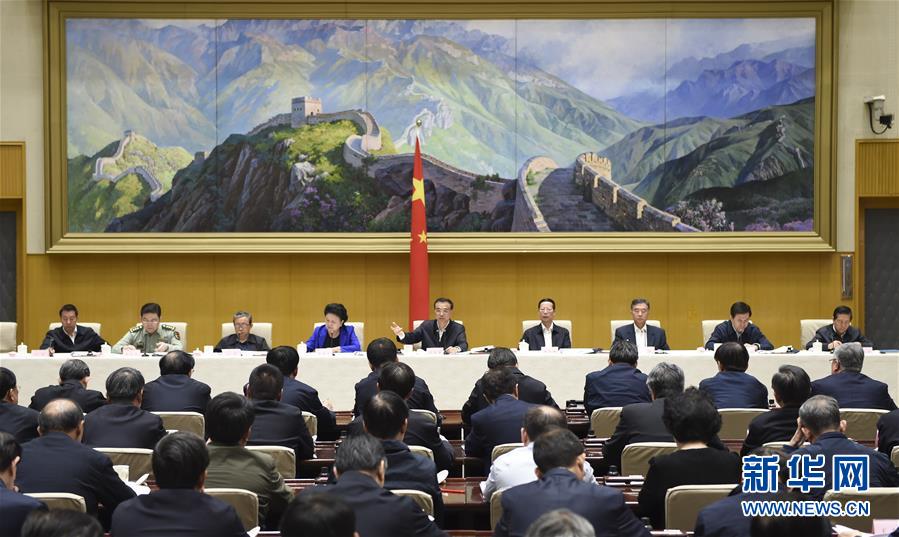 5月9日,国务院在北京召开全国推进简政放权放管结合优化服务改革电视电话会议。中共中央政治局常委、国务院总理李克强发表重要讲话。中共中央政治局常委、国务院副总理张高丽主持会议。 新华社记者 谢环驰 摄