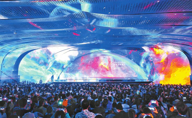 雨果厅内,科幻是这场开幕式的突出亮点。一位魔术表演者,借助道具将自己“传输”到与开幕式舞台相平行的另一个时空,再利用越发成熟的3D打印技术,将自己“打印”回开幕式现场。这场以“时空穿梭”为主题的魔幻秀,引来现场观众阵阵掌声。