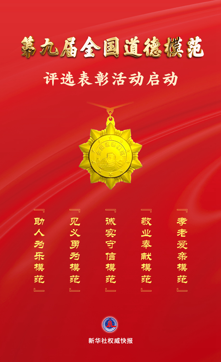 据悉,第九届全国道德模范分为“助人为乐模范”“见义勇为模范”“诚实守信模范”“敬业奉献模范”“孝老爱亲模范”5个类别,通过群众推荐、遴选审核、公示宣传、投票评选等步骤评选产生,将激励亿万群众把道德模范榜样力量转化为生动实践,为全面建设社会主义现代化国家、全面推进中华民族伟大复兴提供坚强思想保证、强大精神力量和有力道德支撑。