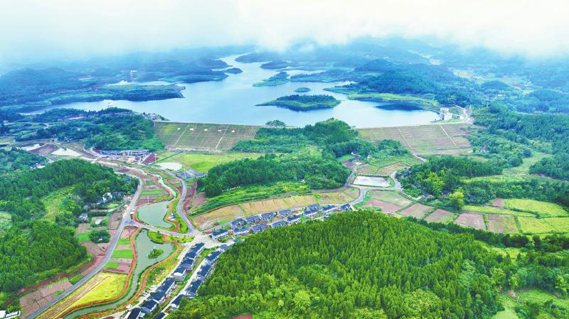乡村振兴,基础建设是重点,生态宜居是关键。近年来,蓬溪县加快完善“六网”基础设施,开展农村公共服务补短板行动,开展美丽乡村共富路建设三年行动,创建“四好农村路”全国示范县并通过验收;全国172项重大水利工程之一的武都引水蓬溪船山灌区枢纽工程——白鹤林水库下闸蓄水,渠系即将全面贯通,全县农业用水将实现全域自流灌溉,白鹤林村等一批水美新村应运而生;启动“山水画卷·墨香农庄”和“唐兴古城·都市田园”两个综合体项目建设,打造全县城乡融合发展的示范点。